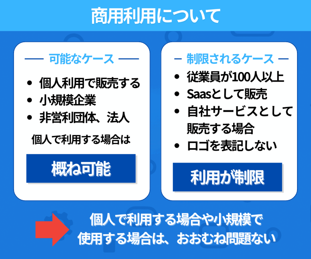 ただし、前述したように商用利用の条件を満たしていることが必須となります。