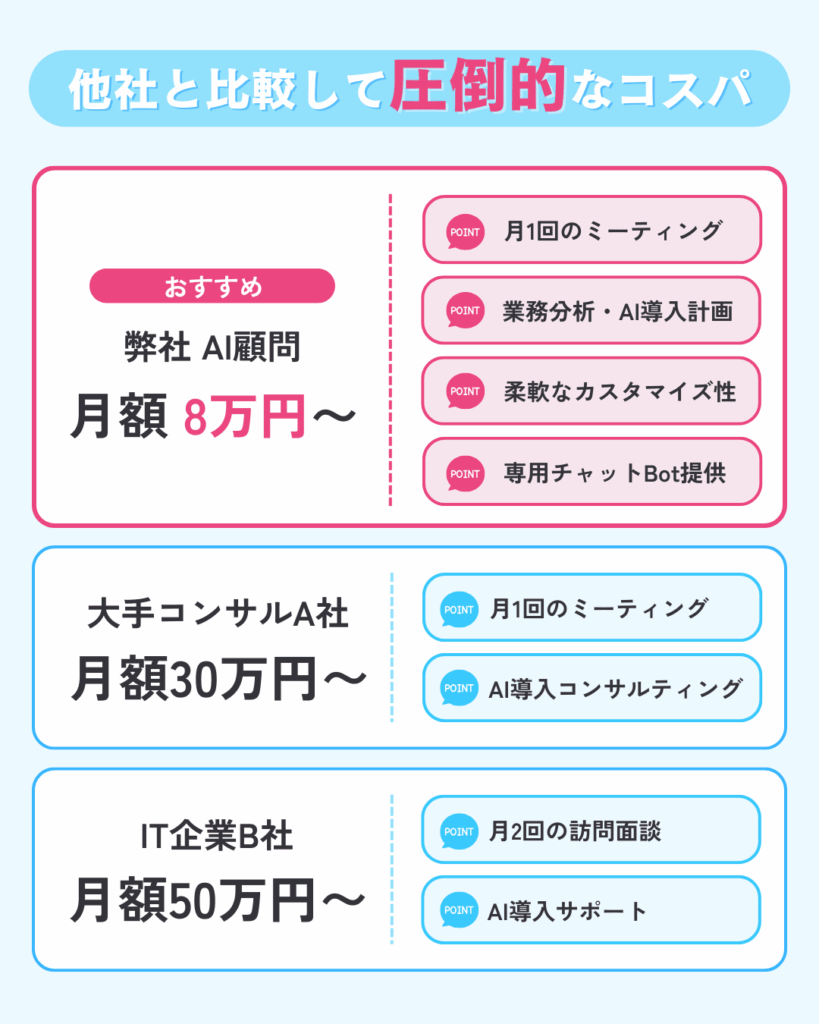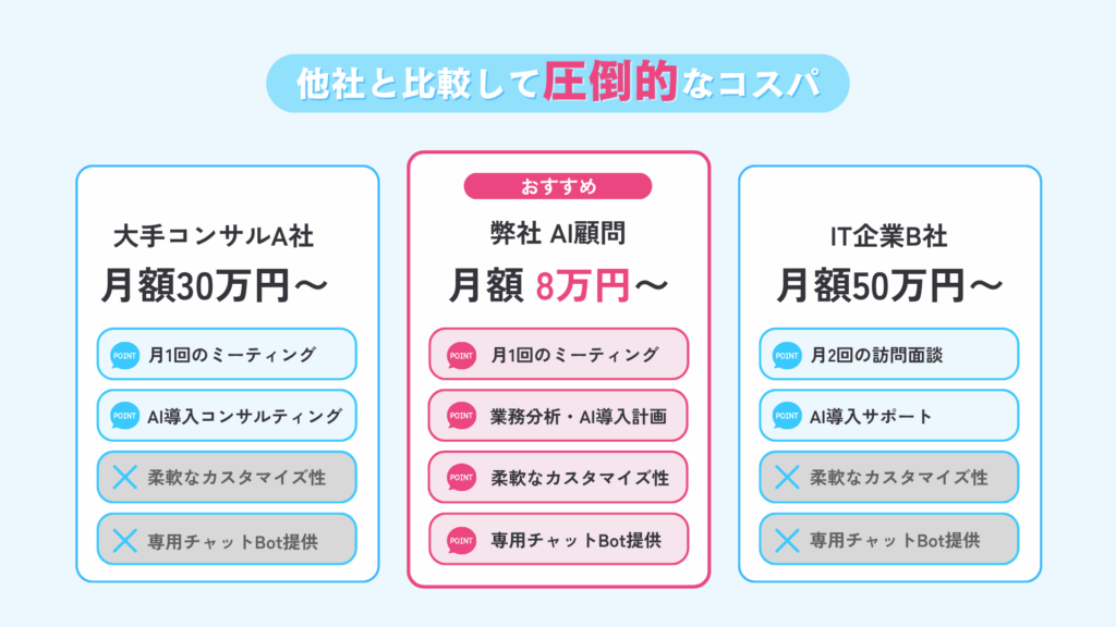 高品質なAI顧問サービスを、業界最安値レベルの価格でご提供します