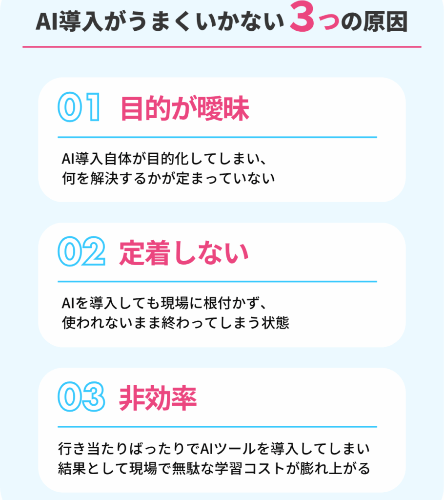 継続的な改善とフォローアップにより、AI活用の定着と業務効率化、そして確実な成果創出を実現します。