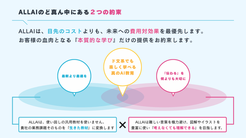 ALLAIのAIリスキリングは、単なるツールの使い方を教える研修ではありません。