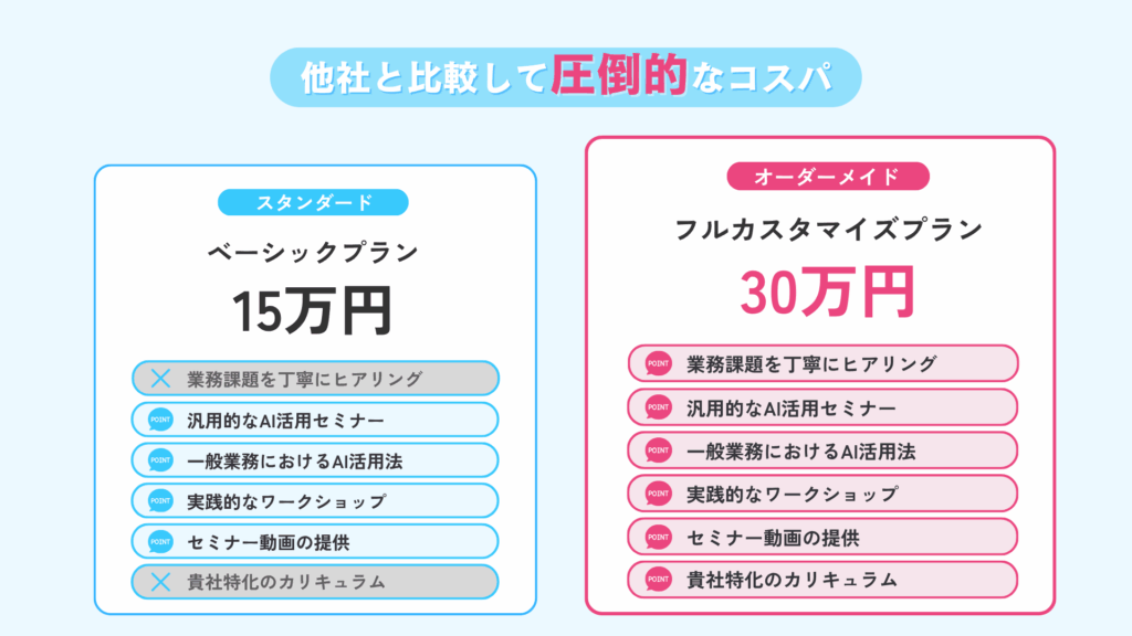 高品質なAIセミナーを、業界最安値レベルの価格でご提供します