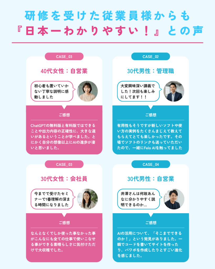 苦手意識を持つ方にも「これなら私にもできそう!」と感じてもらえるAI教育を追求します。