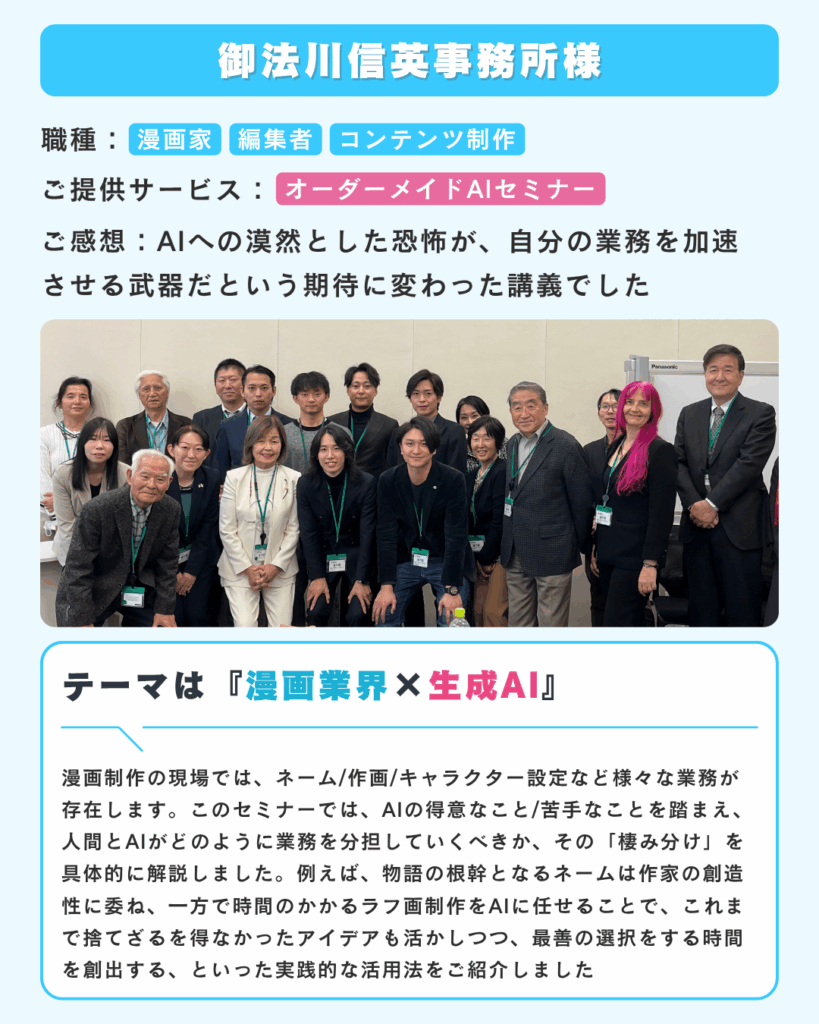 日進月歩の生成AI業界では、過去に作成した完成品を提供するだけの汎用なセミナーでは、
