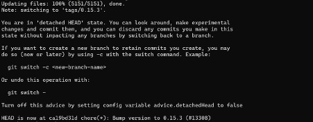 また、クローン時点で特定のバージョンを取得したい場合は、”–branch” オプションで指定することもできます。