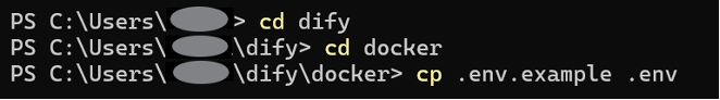 git clone --branch 0.15.3 https://github.com/langgenius/dify.gitDifyのファイルを取得できたら、次は実際に起動するための環境設定を行います。