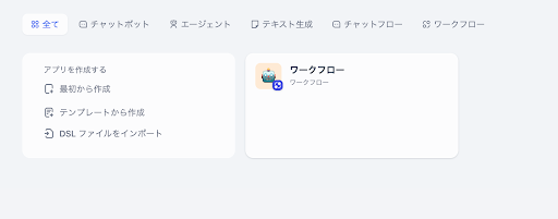 まず、Dify上でチャットボットのアプリケーションを新規作成します。